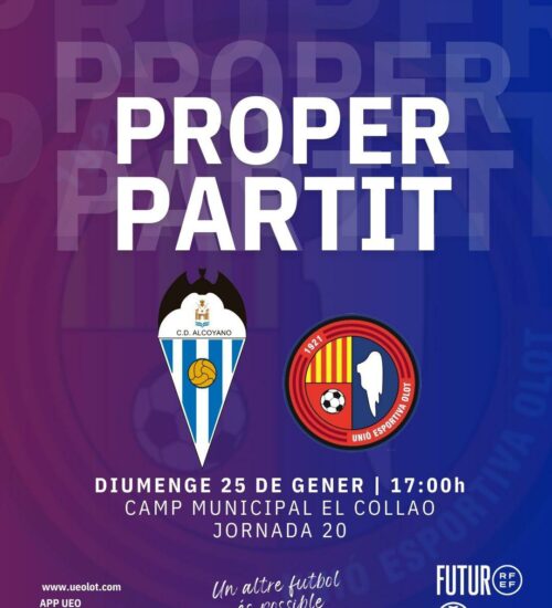 Reforçat moralment després del triomf contra el líder, la Unió Esportiva Olot es desplaça a un escenari històric del futbol estatal, el Gestaser El Collao (diumenge, 17.00h). Al davant, un CD Alcoyano a tocar del play-off i que és el segon equip menys golejat, encadenant tres empats sense gols de forma consecutiva. Roger Vidal podrà afegir més carn a la graella amb les últimes cares noves del mercat d'hivern, Nuha Marong i Carlos Martínez, mentre que Pau Salvans és dubte.