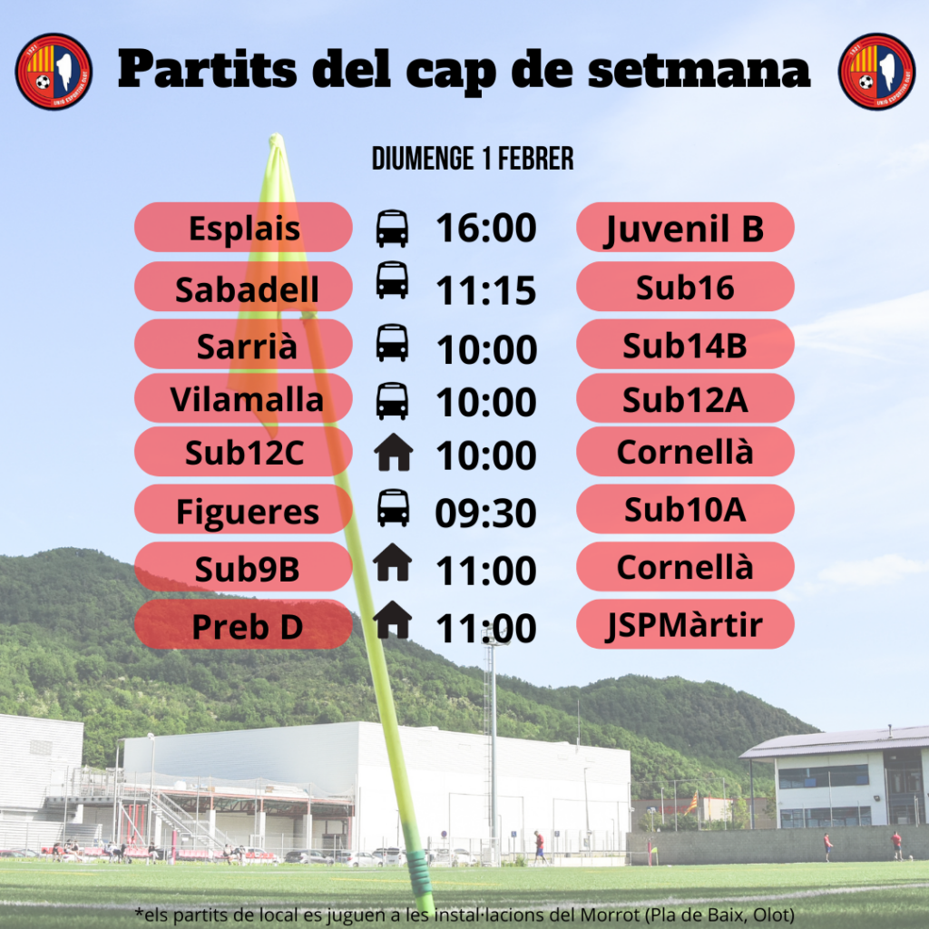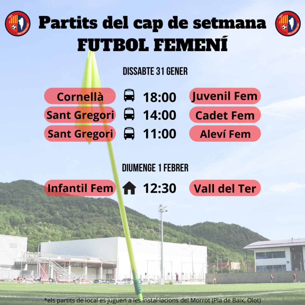L’agenda de la jornada al FUTBOL BASE (31 de gener i 1 de febrer)